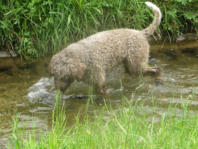 Ich habe das Rudel teilweise gesplittet, weil sonst zu viel Action gewesen wäre. Wenigstens war das Wetter am Anfang der Woche schön. Die Hunde genossen den kleinen Kanal und rannten darin auf und ab.