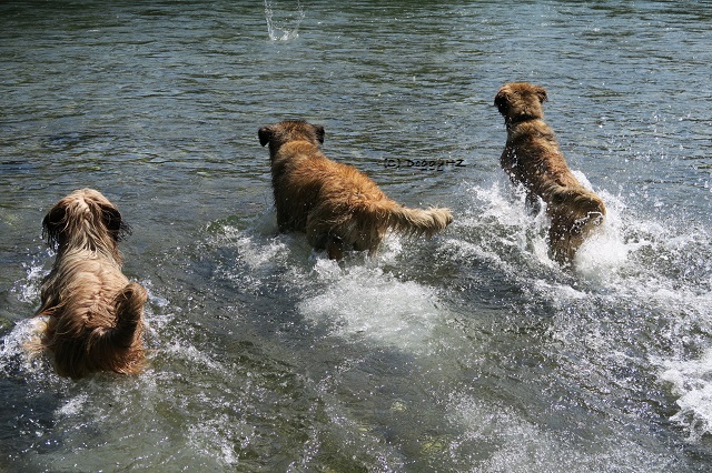 Die Hunde haben schon eine Menge Spass am und im Wasser...
